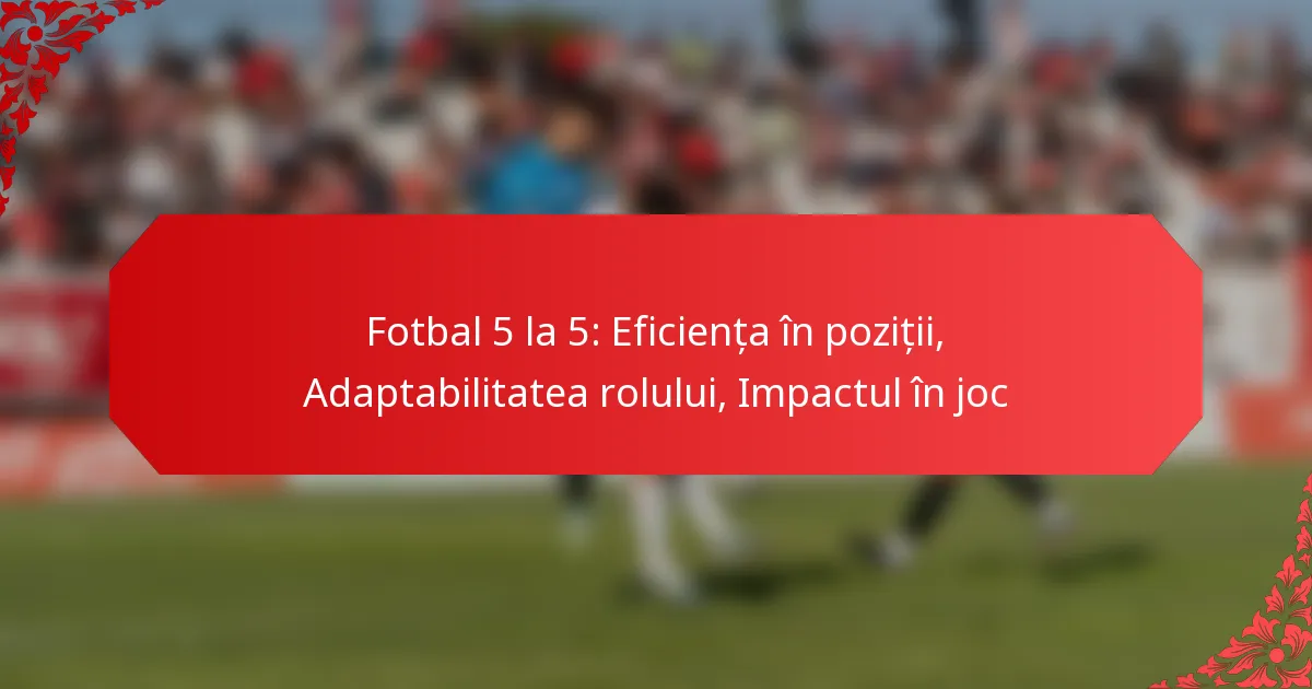 În fotbalul de 5, poziția fiecărui jucător – portar, fundaș, mijlocaș sau atacant – joacă un rol vital în succesul echipei, necesitând abilități și responsabilități specifice. Capacitatea de a adapta rolurile îmbunătățește dinamica echipei, permițând răspunsuri strategice la adversari și exploatarea oportunităților în timpul jocului. Înțelegerea contribuțiilor unice ale fiecărei poziții este esențială pentru strategii eficiente de meci, influențând în cele din urmă rezultatul jocului.