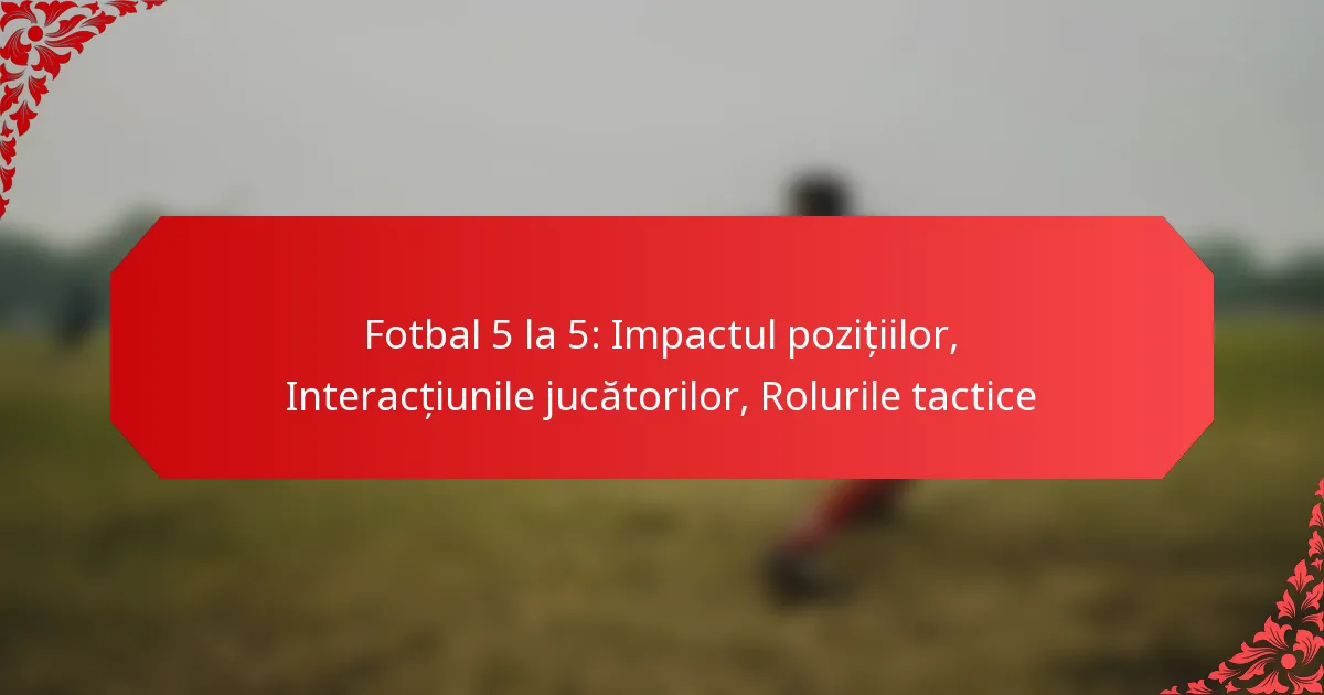 În fotbalul de 5, pozițiile distincte de portar, fundași, mijlocași și atacanți joacă un rol crucial în conturarea strategiei și performanței echipei. Interacțiunile eficiente între jucători sunt esențiale pentru a încuraja munca în echipă și a îmbunătăți execuția tactică, în timp ce rolurile clar definite permit un joc ofensiv și defensiv optimizat. Înțelegerea acestor dinamici este esențială pentru maximizarea eficienței unei echipe pe teren.