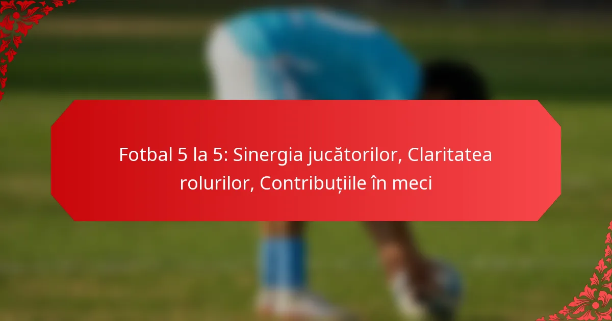 În fotbalul de 5, sinergia jucătorilor este crucială pentru maximizarea performanței echipei, deoarece se bazează pe colaborarea eficientă a jucătorilor și înțelegerea mișcărilor reciproce. Definițiile clare ale rolurilor îmbunătățesc această sinergie, asigurându-se că fiecare jucător își cunoaște responsabilitățile, ceea ce favorizează o comunicare și coordonare mai bune. În cele din urmă, abilitățile individuale și munca în echipă se combină pentru a contribui la meciuri, inclusiv prin marcarea, asistarea și apărarea, toate fiind vitale pentru a obține succesul pe teren.