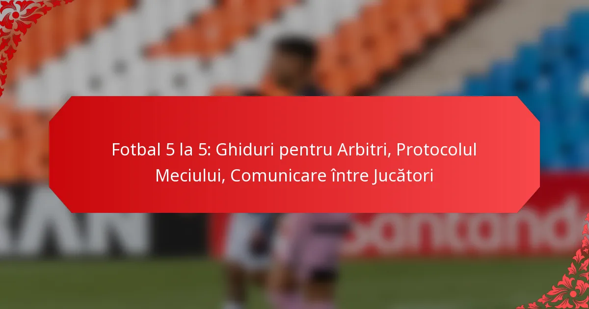 În fotbalul de 5, arbitrii sunt esențiali pentru menținerea unui joc corect și respectarea regulilor unice ale jocului. Aceștia gestionează comportamentul jucătorilor, iau decizii critice cu privire la faulturi și facilitează protocoalele de meci, care includ verificările pre-meci și raportarea post-meci. Comunicarea eficientă între arbitri și jucători, prin semnale și gesturi clare, favorizează înțelegerea și promovează fair-play-ul pe parcursul jocului.