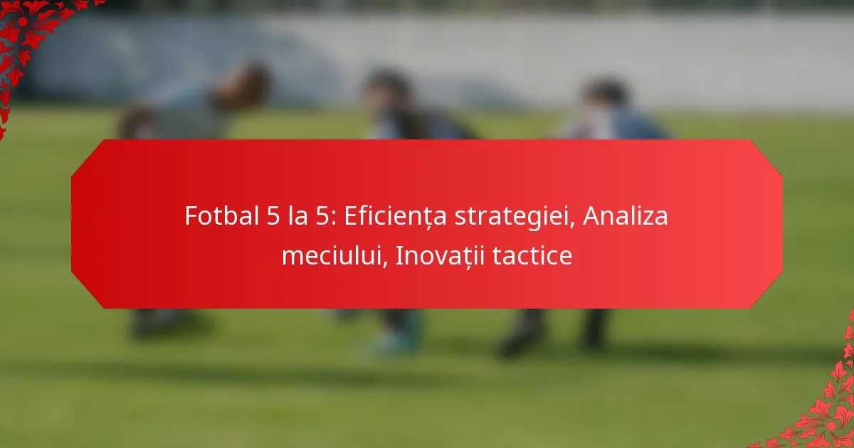 Fotbalul pe 5 jucători necesită strategii eficiente care prioritizează utilizarea spațiului, mișcarea rapidă a mingii și munca în echipă coezivă. Prin analizarea performanței în meciuri, echipele pot identifica punctele lor forte și slabe, permițându-le să-și rafineze tacticile și să îmbunătățească coordonarea. În plus, integrarea inovațiilor tactice și a tehnologiei transformă jocul, permițând antrenorilor să adapteze strategiile profesionale de succes la acest format rapid.