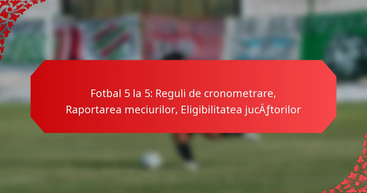Fotbalul 5-a-side are reguli specifice de cronometrare care promovează fair-play-ul și mențin fluxul jocului, meciurile fiind de obicei împărțite în două reprize și având reglementări privind timpul de oprire și înlocuirile. Raportarea precisă a meciurilor este crucială pentru documentarea rezultatelor și statisticilor jucătorilor, asigurând integritatea ligii. În plus, înțelegerea criteriilor de eligibilitate a jucătorilor, inclusiv cerințele de vârstă și nivel de abilități, este esențială pentru conformitate și competiție corectă.